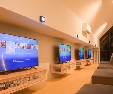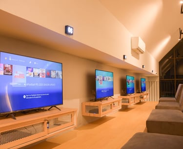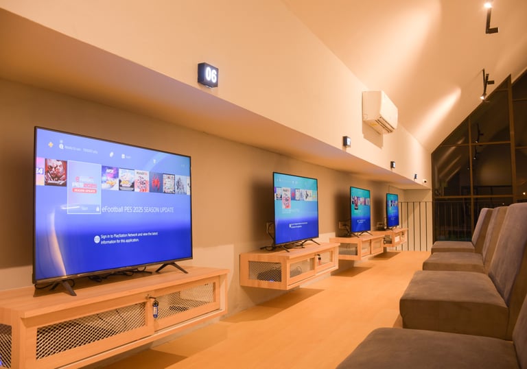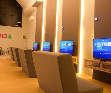 Nikmati pengalaman bermain PlayStation 5 dan nonton Netflix yang nyaman bersama teman dan keluarga di ruangan VIP kami. Didesain untuk meningkatkan kenyamanan dan keseruan saat bermain.